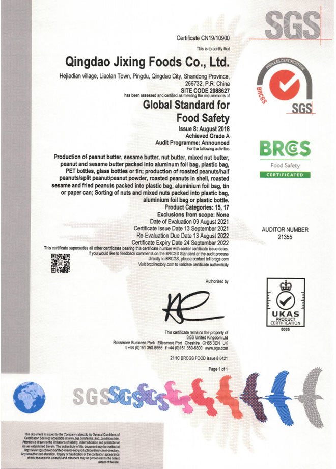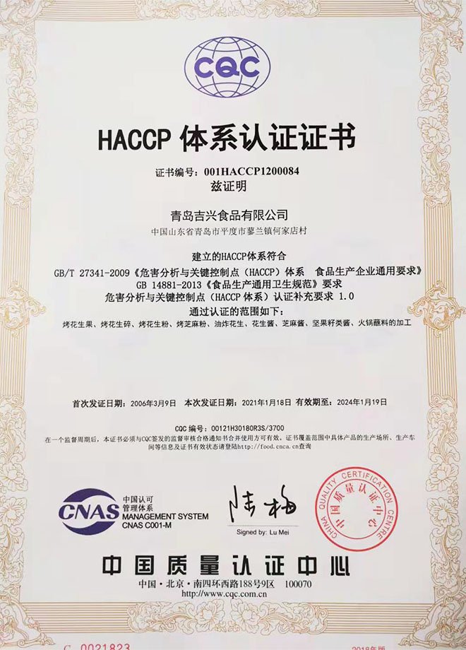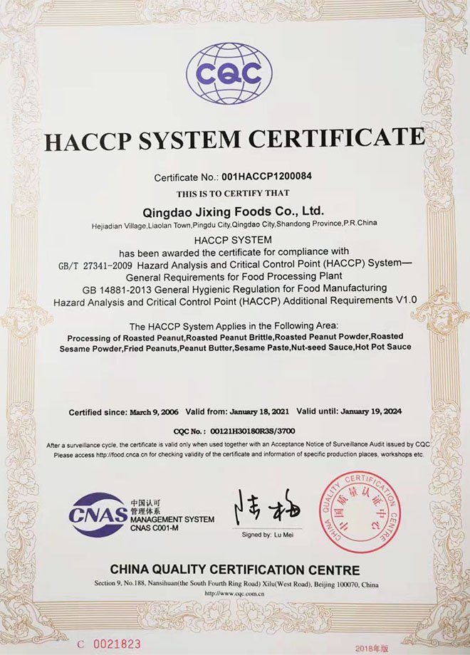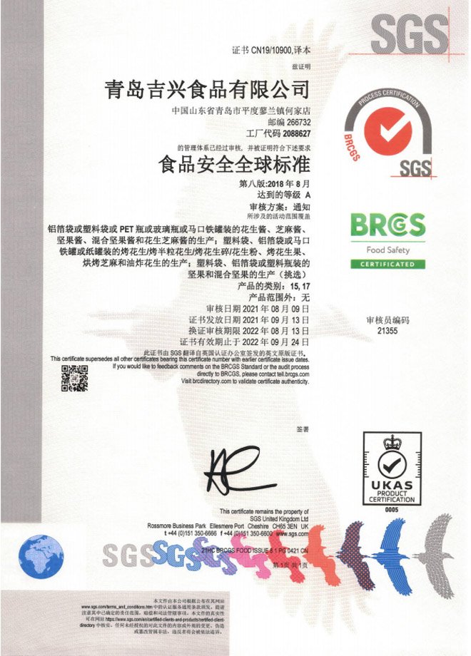 公司先后通過了HACCP、“全球BRCGS認證”等認證,公司擁有玻璃瓶花生醬清洗罐裝一體化自動生產線、10-30萬級空氣凈化灌裝車間,全自動化生產設備。配備美國黃曲霉素檢測儀、微生物/AV/POV獨立檢測室。